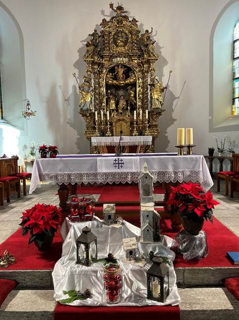 Durch das liebevolle Schmücken unserer Kirche wird diese Zeit auf besondere Weise sichtbar und spürbar. Der Raum lädt ein zur Stille, zum Gebet und zur Gemeinschaft. In der festlichen Atmosphäre aus Licht, Farben und Zeichen des Glaubens können wir innehalten, den Alltag loslassen und unser Herz neu auf das Wesentliche ausrichten – auf die Freude über die Geburt des Erlösers und auf das Fest der Liebe.