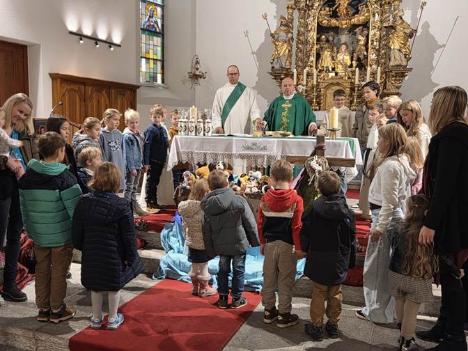 Am Sonntag, den 16. November, einem typisch nasskalten Novembertag, feierten wir in Saas-Almagell einen Familiengottesdienst mit dem Thema Arche Noah, dazu durften die Kinder ein Plüschtier mitbringen.