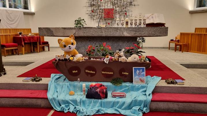 Ein herzliches Dankeschön gilt an dieser Stelle auch unserer Sakristanin Rosmarie Sterren, die die Kirche mit viel Liebe zum Thema dekoriert hat – Noah hätte es definitiv gefallen!
