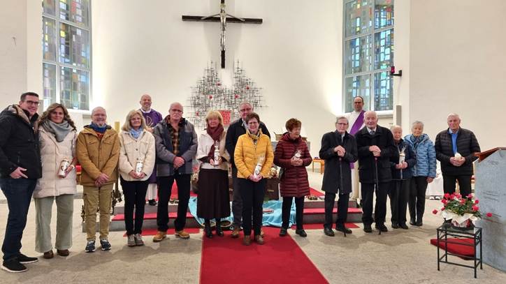 Ein besonders rührender Moment war die Ehrung unserer Ehejubilare. Pfarreipräsidentin Myrta Burgener lud alle Paare nach vorne und fand eine herrlich treffende Beschreibung: „Eine gute Ehe ist wie ein Garten – er braucht Zeit, Pflege, Geduld… und manchmal vielleicht auch ein bisschen Unkrautjäten!“ Pfarrer Marek spendete den Paaren den Segen und überreichte liebevoll gestaltete Kerzen als Erinnerungszeichen ihrer Liebe – ein Licht, das noch lange weiterstrahlen darf.