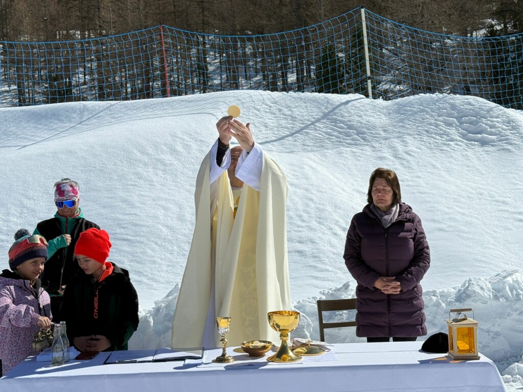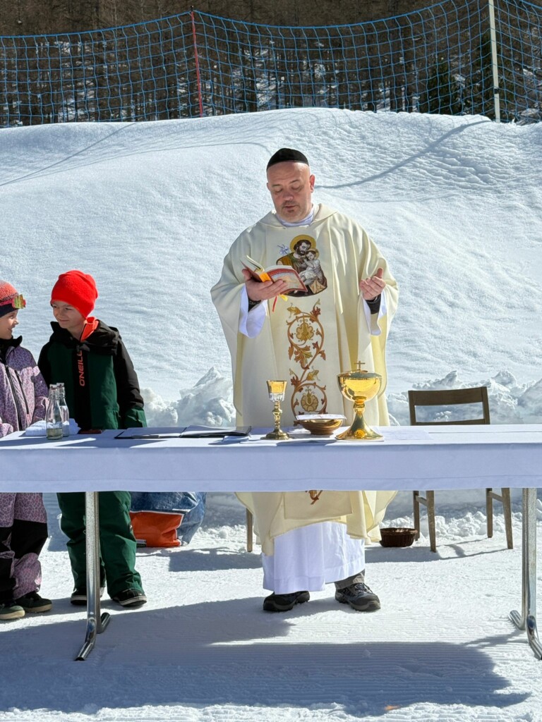 Am 19. März, dem Fest des Heiligen Josef, durften wir inmitten der beeindruckenden Bergwelt im Skigebiet Furggstalden einen ganz besonderen Gottesdienst feiern. Zahlreiche Gläubige folgten der Einladung und versammelten sich gemeinsam mit Pfarrer Marek, um unter freiem Himmel die heilige Messe zu feiern.